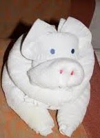 One day, upon realizing we had only consumed 16,093 calories, Jean and I went off to the late-night buffet. We stuffed ourselves with ice cream and pizza to bring our intake up to an even 20K. As if running into the 400-pound couple on the buffet line wasn’t enough of a wake-up call, when we got back to the room, we found our room steward had left us a pig made out of towels. Another night we got an elephant.