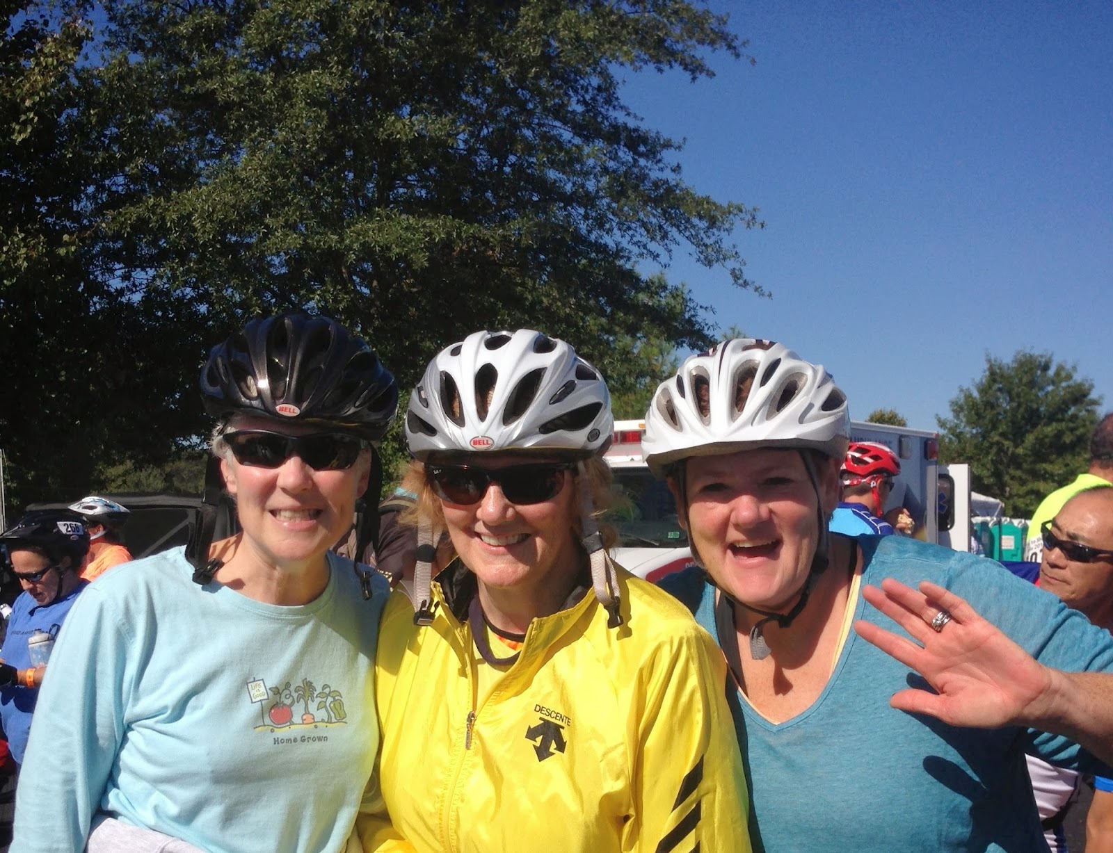 Despite my aching bones, not to mention buttocks, I rode miles and miles and miles. And then one day I googled the MS Bike Ride, saw there was now an option to ride “just” 80 miles and take a bus back home on Saturday night. It didn’t take long to convince Emily and Mary Anne to sign up so we could relive our youth together.